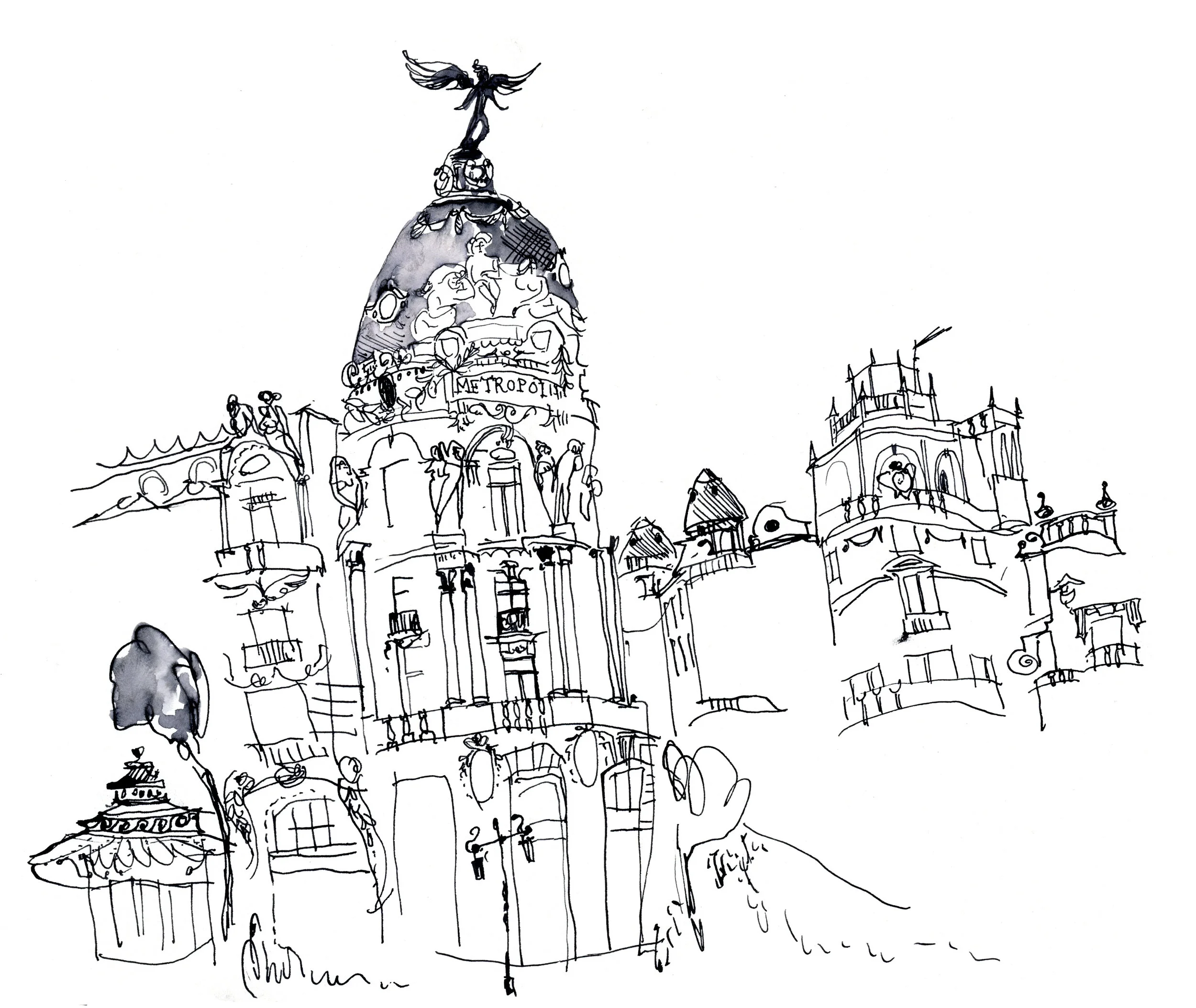 Ink and Watercolor done on site of the beautiful people, architecture and food of Cartagena